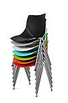 Silla monocasco plástica disponible en 8 colores: negro, rojo, blanco, naranja,verde,aqua,gris y azul. Estructura metálica fija. Garantía 2 años.